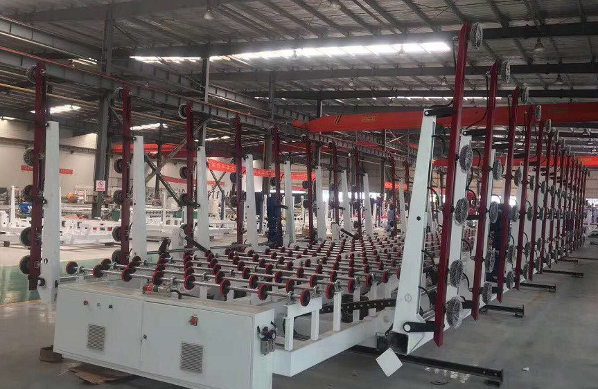 The overall plan of the project: CNC automatic glass cutting line is composed of automatic loading table, automatic cutting table and air-floated breaking table. परियोजना की समग्र योजना: सीएनसी स्वचालित ग्लास कटिंग लाइन स्वचालित लोडिंग टेबल, स्वचालित कटिंग टेबल और एयर-फ्लोटिंग ब्रेकिंग टेबल से बना है। The automatic glass cutting line is mainly used in the processing of flat glass, which can quickly and accurately load sheets, cut straight-line,special-shaped glass and air-floated mechanical breaking sheets.Work flow is as follows: Loading table uses mechanical turnover, through the vacuum suction cup taking glass sheet from the rack, put down to the loading table. स्वचालित ग्लास कटिंग लाइन का उपयोग मुख्य रूप से फ्लैट ग्लास के प्रसंस्करण में किया जाता है, जो शीट्स को जल्दी और सही तरीके से लोड कर सकता है, स्ट्रेट-लाइन, विशेष-आकार के ग्लास और एयर-फ्लोटेड मैकेनिकल ब्रेकिंग शीट्स को काट सकता है। इस प्रकार फ्लो होता है: लोडिंग टेबल मैकेनिकल का उपयोग करता है कारोबार, रैक से ग्लास शीट लेने वाले वैक्यूम सक्शन कप के माध्यम से, लोडिंग टेबल पर रख दिया। The glass is conveyed to the cutting table through the roller on the loading table and the conveyor belt on the cutting table.The cutter holder on the cutting beam of the cutting machine drives the cutter to move at high speed in X direction and Y direction by servo motor. कांच को लोडिंग टेबल पर रोलर के माध्यम से कटिंग टेबल और कटिंग टेबल पर कन्वेयर बेल्ट के माध्यम से अवगत कराया जाता है। कटिंग मशीन के कटिंग बीम पर कटर धारक कटर को एक्स दिशा और वाई दिशा में उच्च गति से स्थानांतरित करने के लिए ड्राइव करता है। सर्वो मोटर। Using Z-axis motor rotation to control the tangent trajectory of tool. टूल के स्पर्शरेखा प्रक्षेपवक्र को नियंत्रित करने के लिए Z- अक्ष मोटर रोटेशन का उपयोग करना। At the same time, the cutter pressure and the depth of the cutter are controlled by analog quantity, and the four axes are operated simultaneously to cut. इसी समय, कटर दबाव और कटर की गहराई को एनालॉग मात्रा द्वारा नियंत्रित किया जाता है, और काटने के लिए चार कुल्हाड़ियों को एक साथ संचालित किया जाता है। When the cutting is finished, the glass sheet is sent to the air-floated breaking table for breaking through the air cushion formed by the conveyor belt and the breaking table. जब कटिंग समाप्त हो जाती है, तो कांच की शीट को कन्वेयर बेल्ट और ब्रेकिंग टेबल द्वारा गठित एयर कुशन के माध्यम से तोड़ने के लिए एयर-फ्लोटिंग ब्रेकिंग टेबल पर भेजा जाता है।