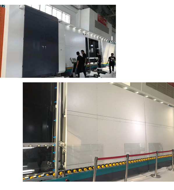 Glass washing section, by washing discharge section, to the box on the checking period of stop, check whether the glass is clean, qualified after stepping on foot switch to the first piece of glass into the plate or piece of positioning, bracket or beam hold a glass plate before pressing to absorb the glass in the past, board face to open in place, in washing discharge period of the second piece of glass in the middle of the first piece of glass will leave frame period since the launch, into the box on the check period, positioning stop, qualified manual frame stepping on foot switch, the glass into pieces positioning pressing. ग्लास वॉशिंग सेक्शन, डिस्चार्ज सेक्शन को धोने के लिए, स्टॉप के चेकिंग पीरियड पर बॉक्स में, जाँचें कि ग्लास साफ़ है, प्लेट स्विच पर ग्लास के पहले टुकड़े या पोजीशनिंग, ब्रैकेट या बीम होल्ड पर पैर रखने के बाद योग्य अतीत में कांच को अवशोषित करने के लिए दबाने से पहले एक ग्लास प्लेट, जगह में खोलने के लिए बोर्ड का चेहरा, कांच के पहले टुकड़े के बीच में कांच के दूसरे टुकड़े के निर्वहन की अवधि में लॉन्च के बाद से, बॉक्स में फ्रेम की अवधि छोड़ दी जाएगी। चेक पीरियड पर, पोजिशनिंग स्टॉप, फुट स्विच पर क्वालिफाइड मैनुअल फ्रेम स्टेपिंग, ग्लास पोजिशनिंग प्रेस में ग्लास। The compressed insulating glass can be automatically transferred to the feeding section of the automatic sealing glue line. संपीड़ित इन्सुलेट ग्लास को स्वचालित रूप से स्वचालित सीलिंग गोंद लाइन के खिला अनुभाग में स्थानांतरित किया जा सकता है। (into the turntable, to photoelectric stop. Step on the foot and the tilting table will fall down automatically. After the glass is removed, step on the foot and the tilting table will rise. (select whether to use the rollover function of the rollover table according to the size of the glass) (rollover table is configured for selection) (टर्नटेबल में, फोटोइलेक्ट्रिक स्टॉप के लिए। पैर पर कदम और टिल्टिंग टेबल अपने आप नीचे गिर जाएगी। ग्लास के हटने के बाद, पैर और टिल्टिंग टेबल पर स्टेप उठ जाएगा।) (रोलओवर के रोलओवर फ़ंक्शन का उपयोग करने के लिए चयन करें। कांच के आकार के अनुसार तालिका) (रोलओवर तालिका चयन के लिए कॉन्फ़िगर की गई है)