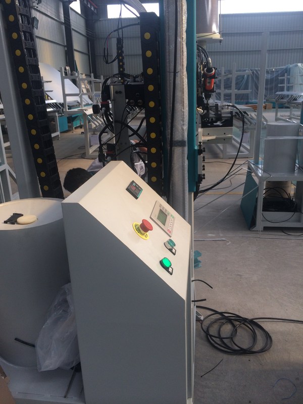 स्वचालित सीलिंग रोबोट के लिए, यांत्रिक सिर मशीन के सामने है, यह स्टेप ग्लास का उत्पादन करते समय डबल ग्लेज़िंग उत्पादन लाइन के साथ वास्तविक कनेक्शन प्राप्त कर सकता है।