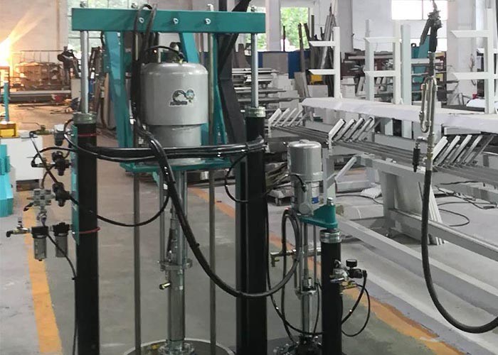 दो घटक गोंद आवेदक ए और बी गोंद पंप, वायवीय प्रणाली, उठाने की व्यवस्था, फ्रेम इत्यादि से बना है। अब हम उन हिस्सों को पेश कर सकते हैंसीलेंट सीलिंग मशीननिम्नलिखित नुसार: