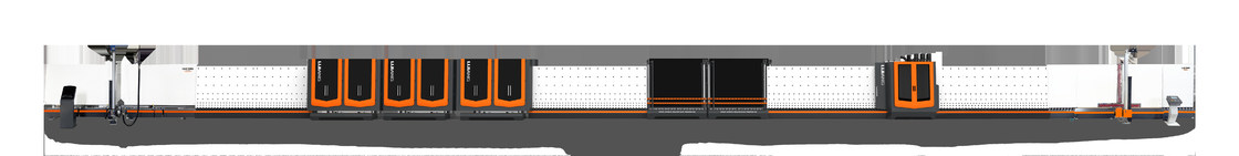 जंबो आकार की डबल प्लेट प्रेसिंग ऊर्जा-बचत इन्सुलेटिंग ग्लास इन्फ्लेटेबल और सीलिंग उत्पादन लाइन